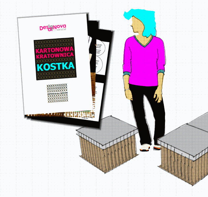 Podczas tygodnia warsztatów udało mi się również zorganizować krótkie praktyki w otwartej przestrzeni, dotyczące tworzenia mebli z kartonu pochodzącego z recyklingu. Na bazie jednego z moich opartych o upcycling projektów Kartonowa Kratownica : KOSTKA stworzyliśmy w krótkim czasie użyteczny przedmiot, który każdy jest w stanie samodzielnie wykonać przy pomocy powszechnie dostępnych materiałów i narzędzi.