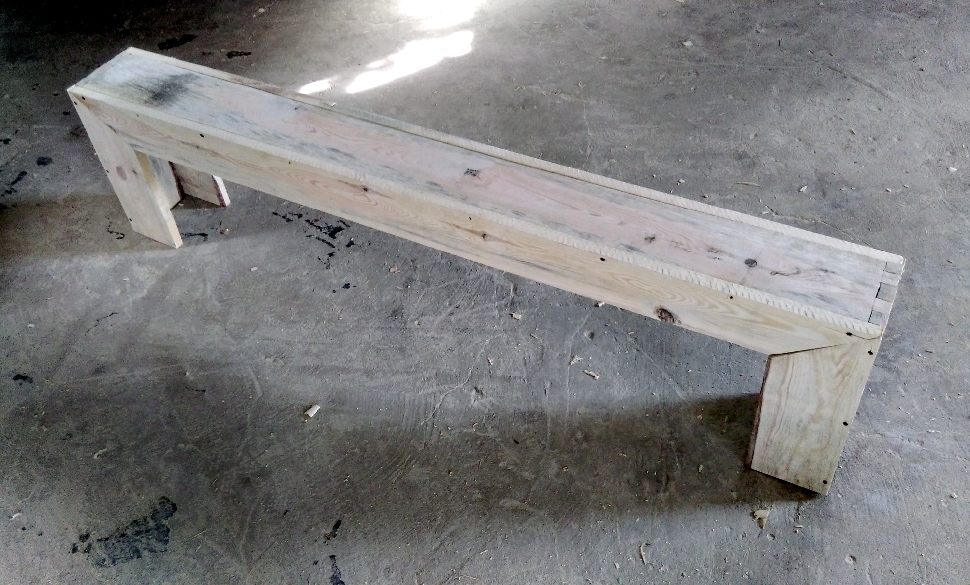 Projekt ławki jest podobny do tego, który wykonał wcześniej inny uczestnik warsztatów. Jego ławka również wykorzystywała tradycyjne połączenia na otwory i kołki w połączeniu ze sztywnymi ramami ścianek mebla jako główną metodę konstrukcyjną, ale całość została połączona ręcznie wykonanymi drewnianymi kołkami ciesielskimi, dzięki czemu cała rama mebla nie zawiera ani grama kleju ani śrub. Oryginalna ławka została wykonana przy pomocy wyłącznie odpowiednio obrobionych desek drewnianych, wiertarki, piły i papieru ściernego.